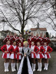 Unter den wachsamen Augen ihrer Lieblichkeit der Bad Homburger Tollität Janina I. und Ihrem Hofstaat (CV Heiterkeit) und in Begleitung der Gardemädels der La Teenies und der großen Garde von der Heiterkeit wurden die Fahnen der Vereine und dem Vereinsring Kirdorf gehisst und der Brunnen liebevoll geschmückt.